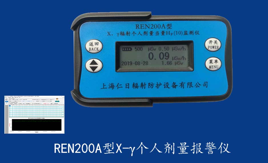 REN200型X、γ個人劑量報警儀(又叫X、γ輻射個人劑量當量HP(10)監測儀)內置高靈敏度蓋格計數管為探測器,主要用來監測各種放射性工作場所的X、γ以及硬β射線的輻射,具有響應快,測量范圍寬的特點。能顯示工作場所的劑量當量率和累積劑量,更換電池時,日期及累積數據能永久保存?蛇x配RenRiPersonal個人劑量管理軟件,該軟件可存儲多個人的歷史數據,能記錄日累積、月累積、年累積、輻照時長、計算平均劑量率、扣除或不扣除本底輻射,且以文字和圖譜的方式展現數據。廣泛應用于核電站、加速器、鋼鐵、化工、同位素應用、醫院、工業X、γ無損探傷、放射醫療、鈷源治療、γ輻照、放射性實驗室、核設施周圍環境監測